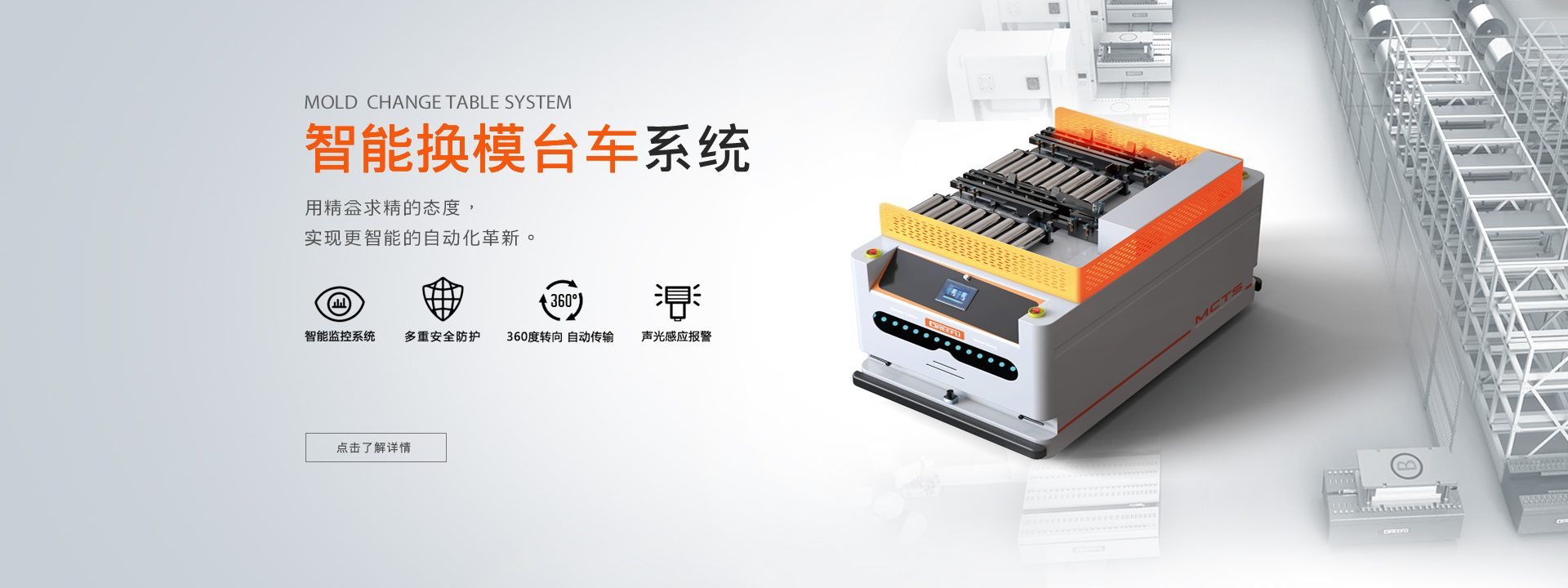 面對市場不斷出現(xiàn)的新挑戰(zhàn),格萊富助力企業(yè)發(fā)展,為工業(yè)生產(chǎn)提供模具裝夾、模具快換、模具搬運、模具倉儲等完善的換模自動化整體解決方案。使企業(yè)不但實現(xiàn)模具快速更換、智能轉(zhuǎn)運、精益生產(chǎn),還提高效率,優(yōu)化工藝,強化競爭優(yōu)勢...了解更多